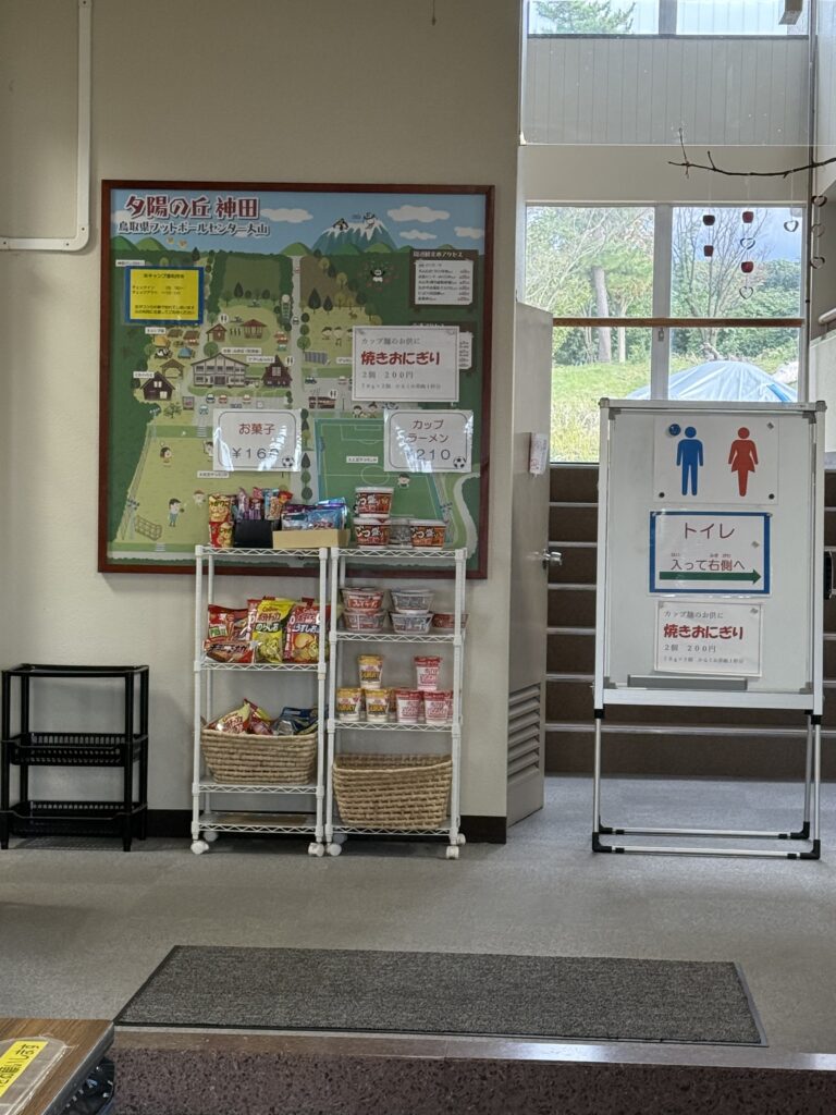 受付・案内の拠点。簡単な売店(カップ麺、お菓子、アイス、氷)、自販機あり。