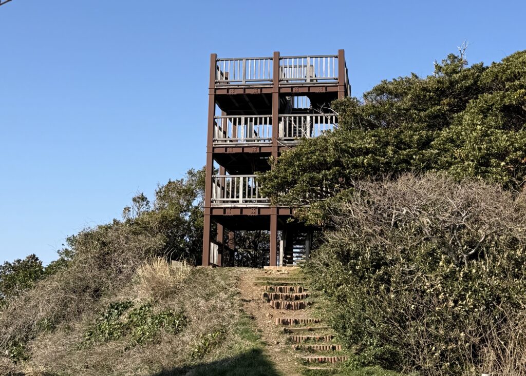 展望台に上がると、より開けた視界で島根半島の海を見渡せます。