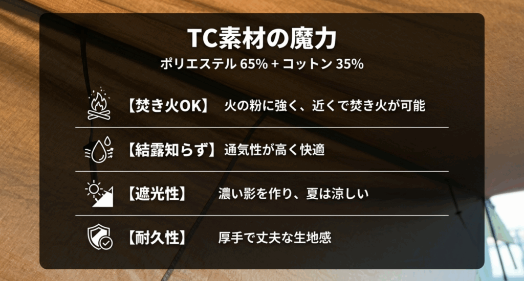 - ✅ TC生地の難燃性と防水性が優秀
