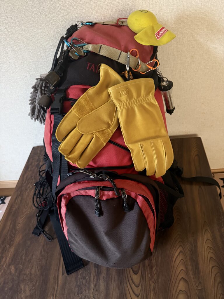 ZEN Campsのグローブは、柔らかい革が特徴です。画像を見てもわかる通り、かなり使い込んだ風合いが出ており、手に馴染んでいます。