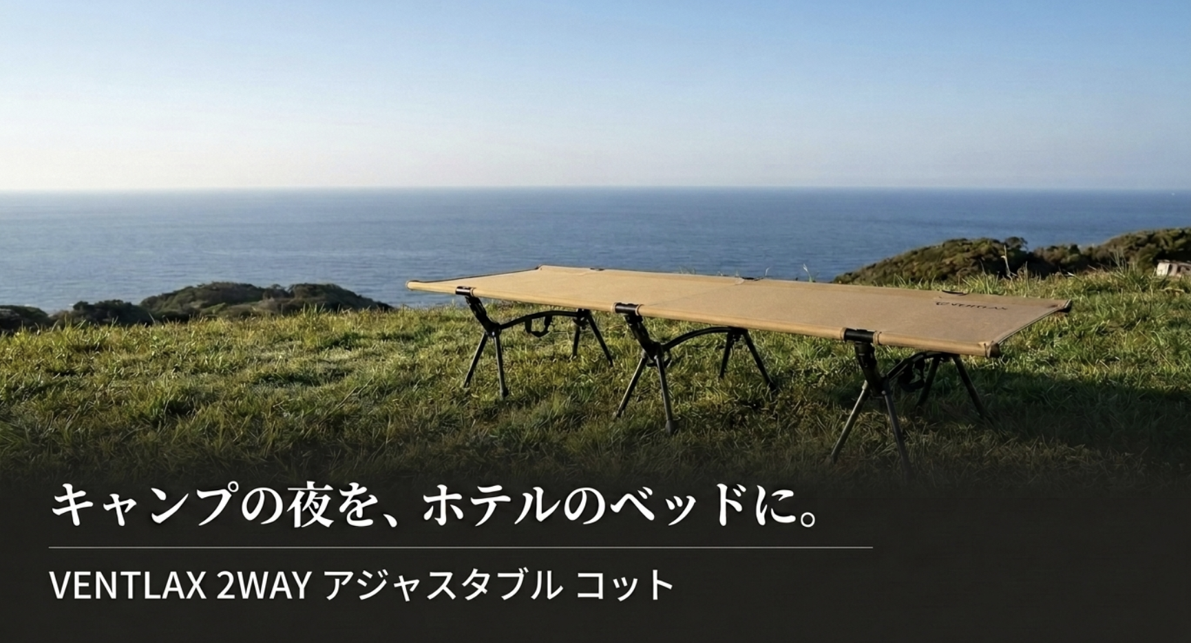 今回紹介する VENTLAX 2WAY アジャスタブル コット は、まさにそこをしっかり押さえた一台です。静音性・快適性・コストパフォーマンスの三拍子が揃った、キャンパーから絶賛されているコットです。